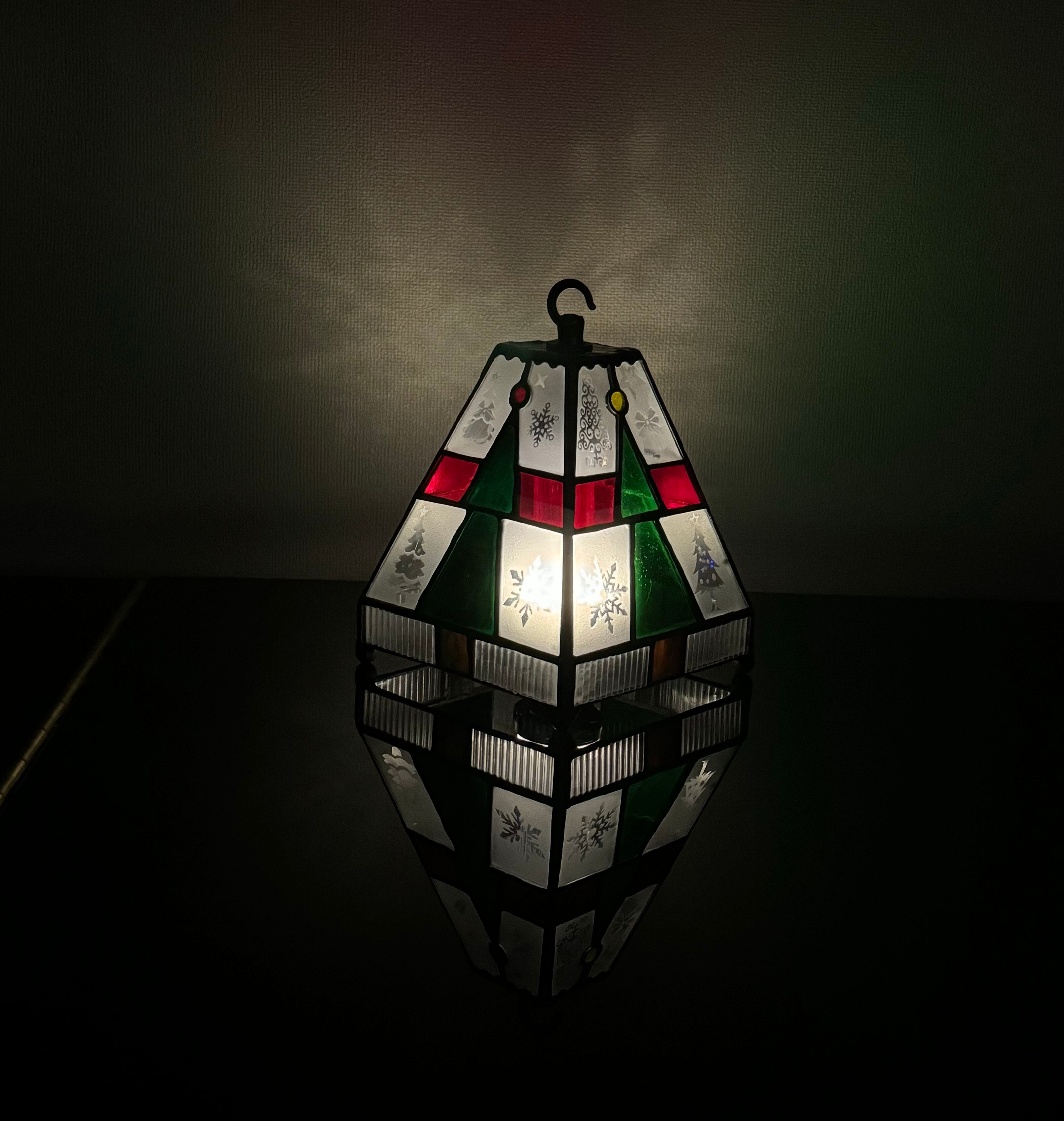 ❤️スイッチを入れた瞬間、お部屋を癒しの空間に変えてくれる、ステンドグラス特有のガラスの光と、クリスマスカラーに包まれ、気と体で楽しんで下さい。