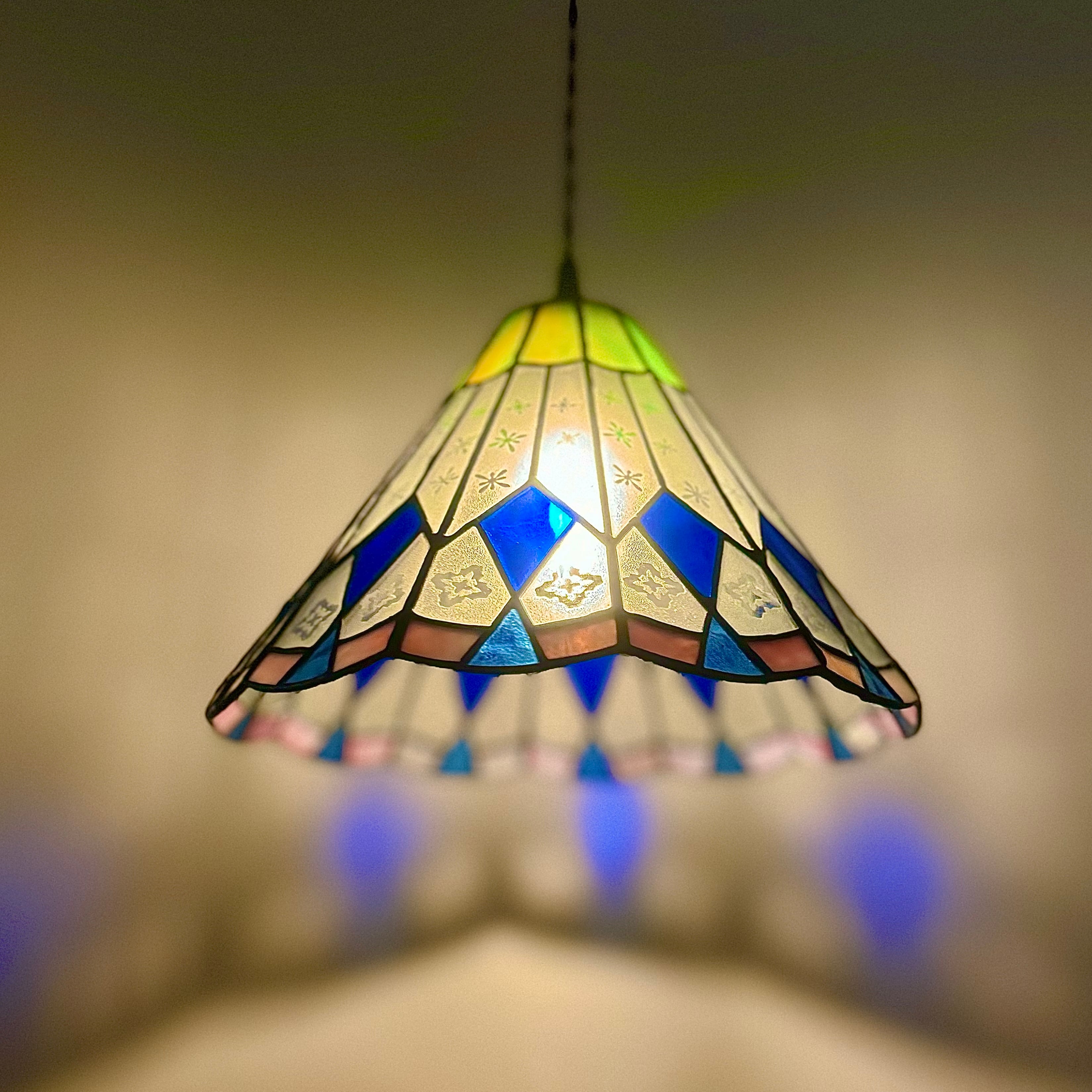 お部屋のインテリア照明として置て、ステンドグラス特有の、光の色と模様を楽しんで下さい。