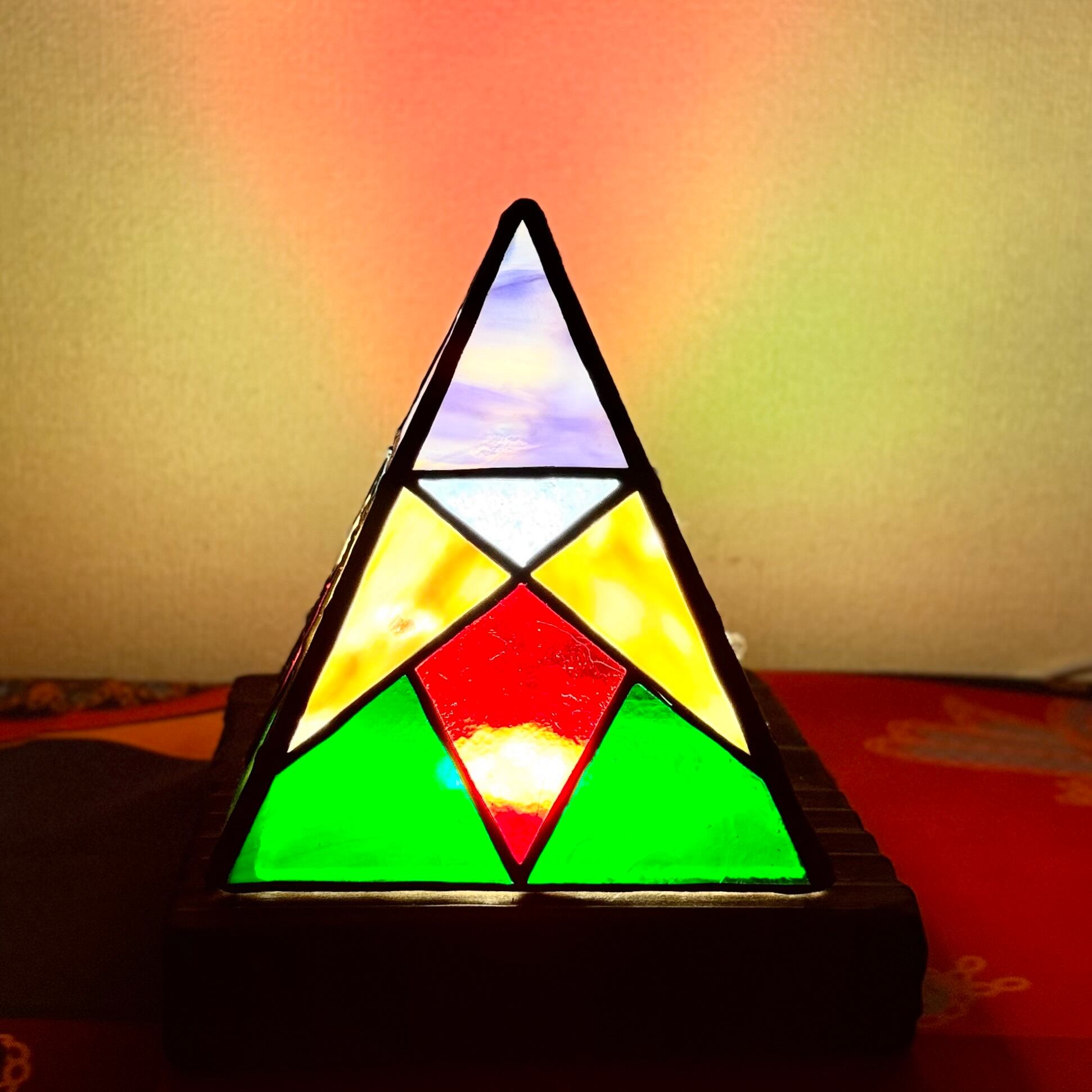 光の色を楽しむ、ステンドグラス 置き型 ランプシェード ピラミッドシェード