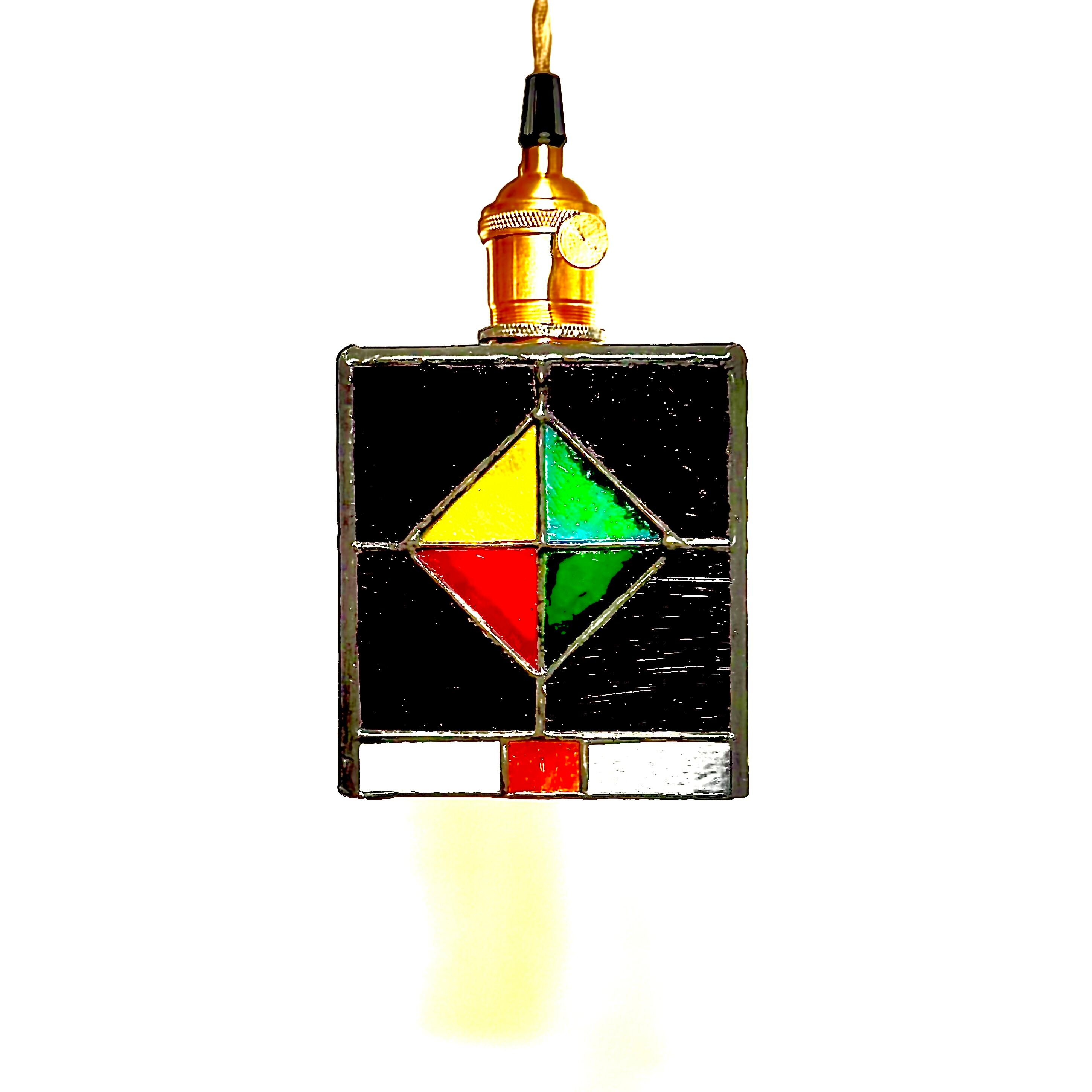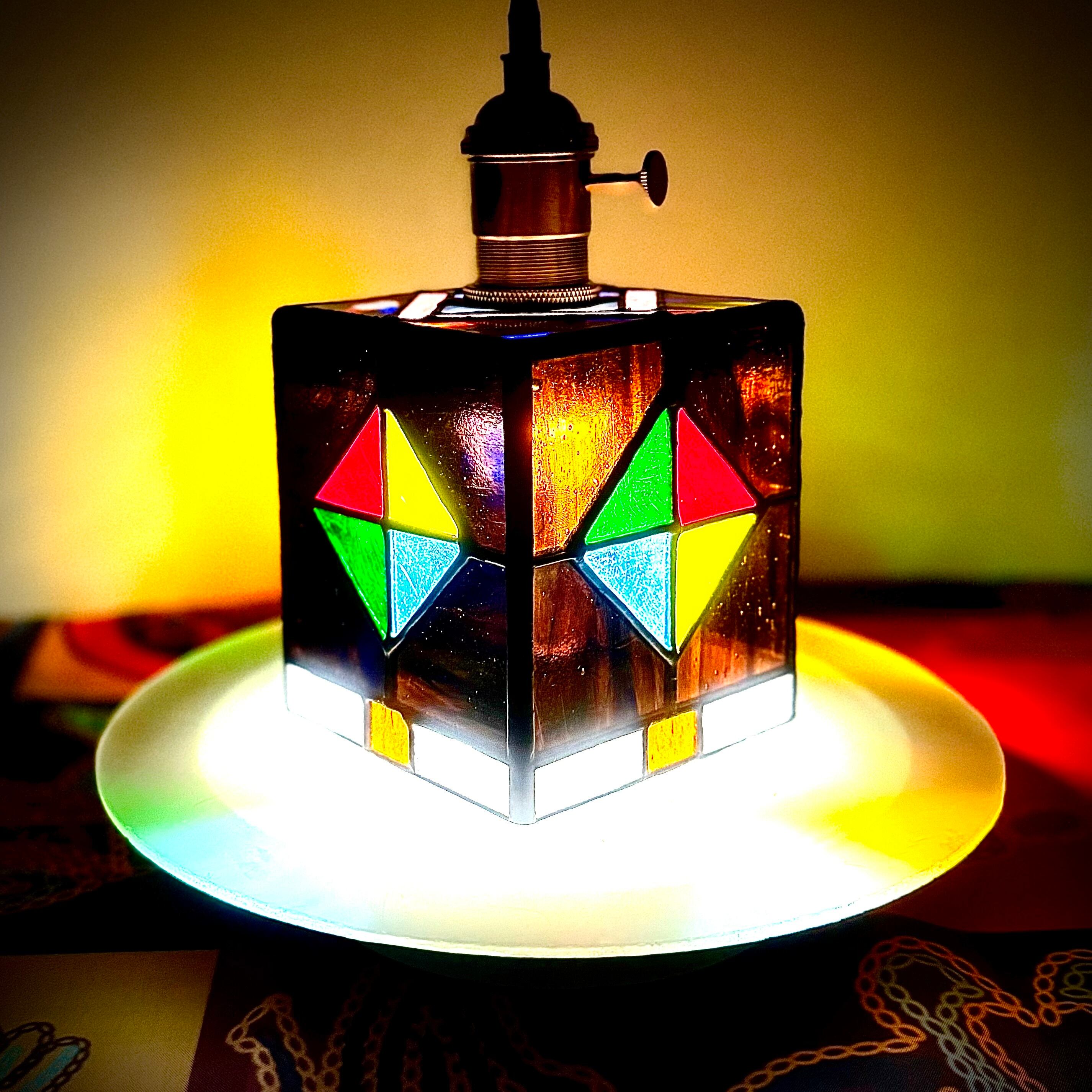 光の色を楽しむ、ステンドグラスのキューブ型ペンダントライト