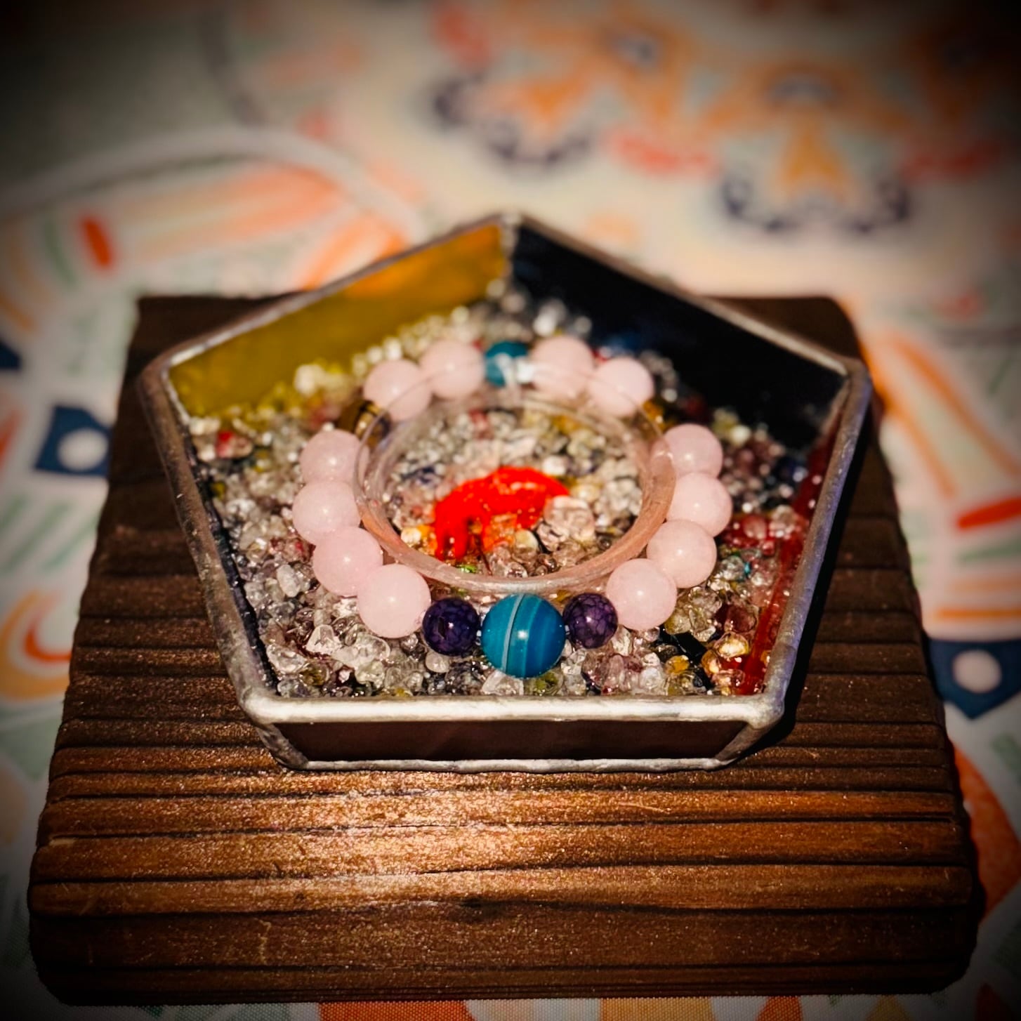 ❤️スイッチを入れた瞬間、お部屋を癒しの空間に変えてくれる、ステンドグラスとクリスタルの輝きで、気持ちやブレスレットの浄化に役立ちます。