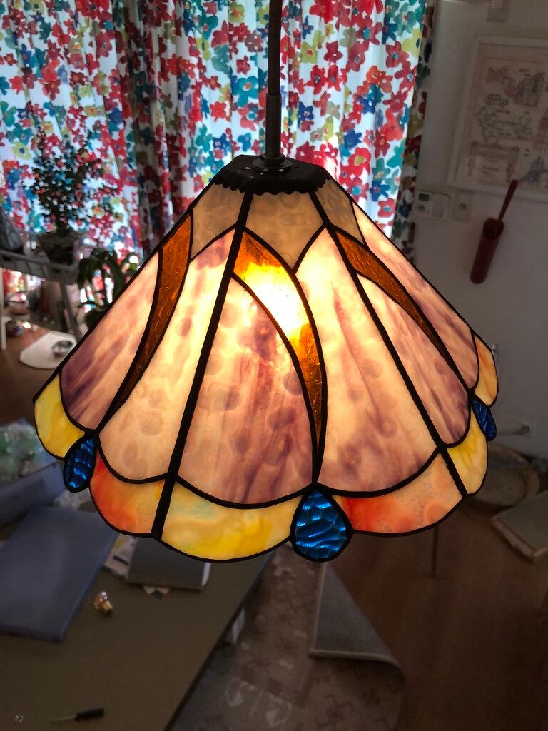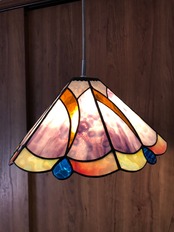 手作りで製作されたステンドグラスのランプシェード。美しくお部屋を彩るアイテム。