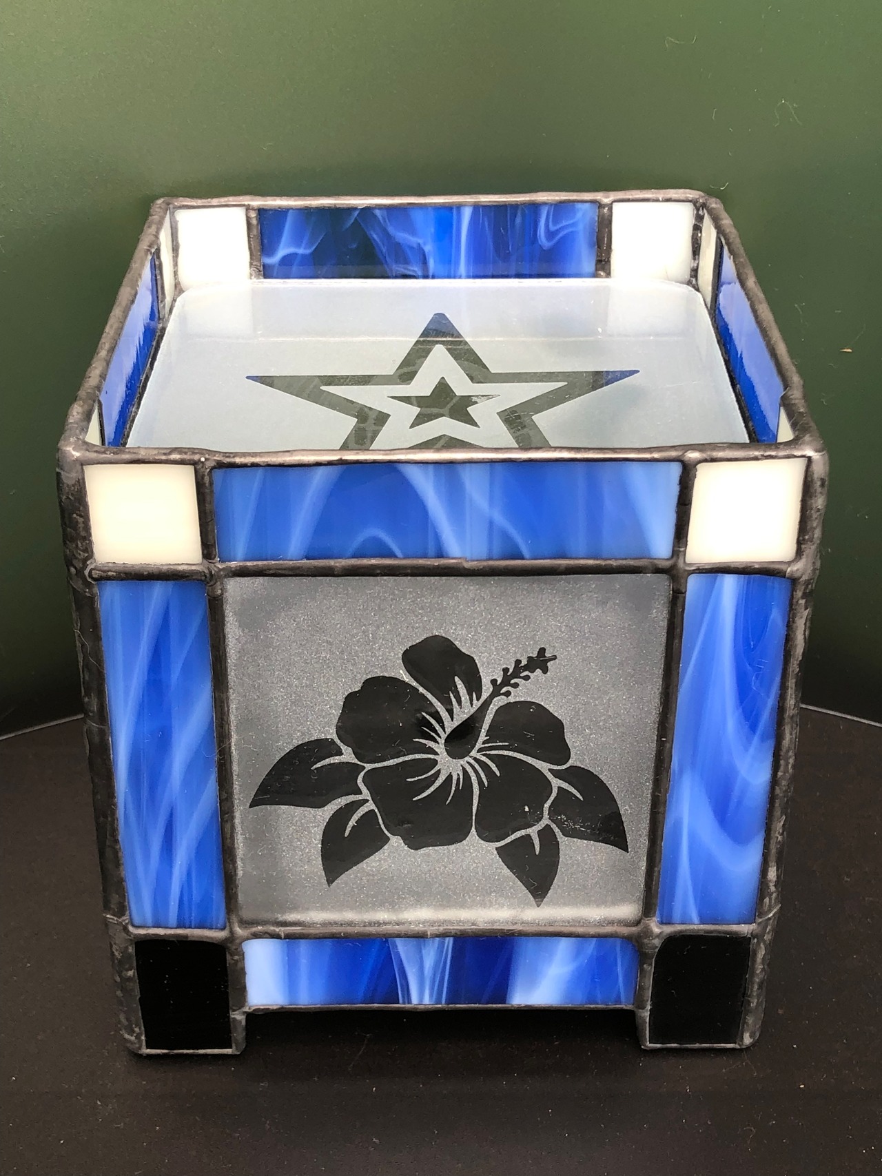 ステンドグラス 南国5 ランプ ステンドグラス イルミネーションライト サンドブラスト 模様 キューブランプ 照明器具