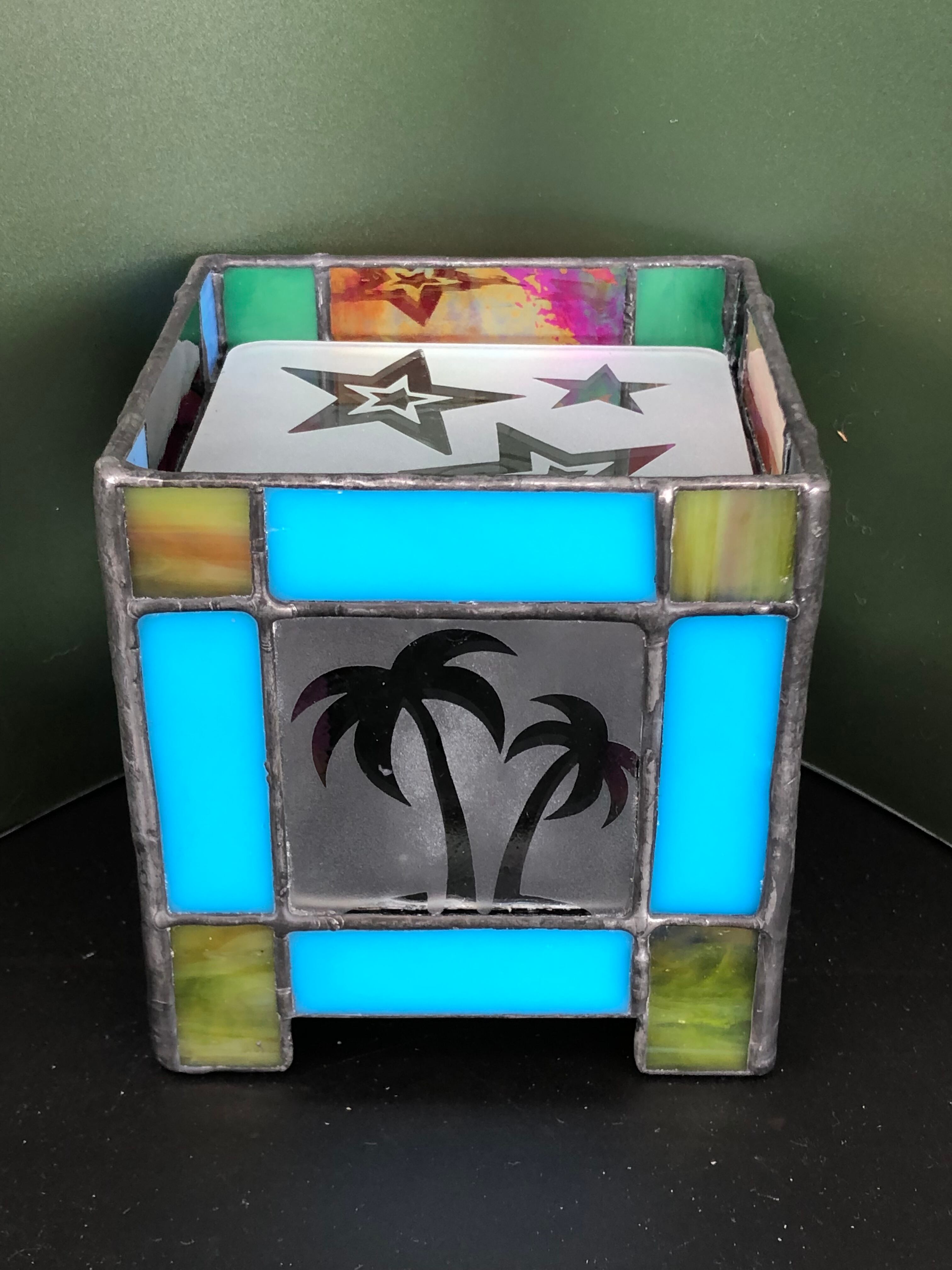 ステンドグラス 南国1 ランプ ステンドグラス イルミネーションライト サンドブラスト 模様 キューブランプ 照明器具